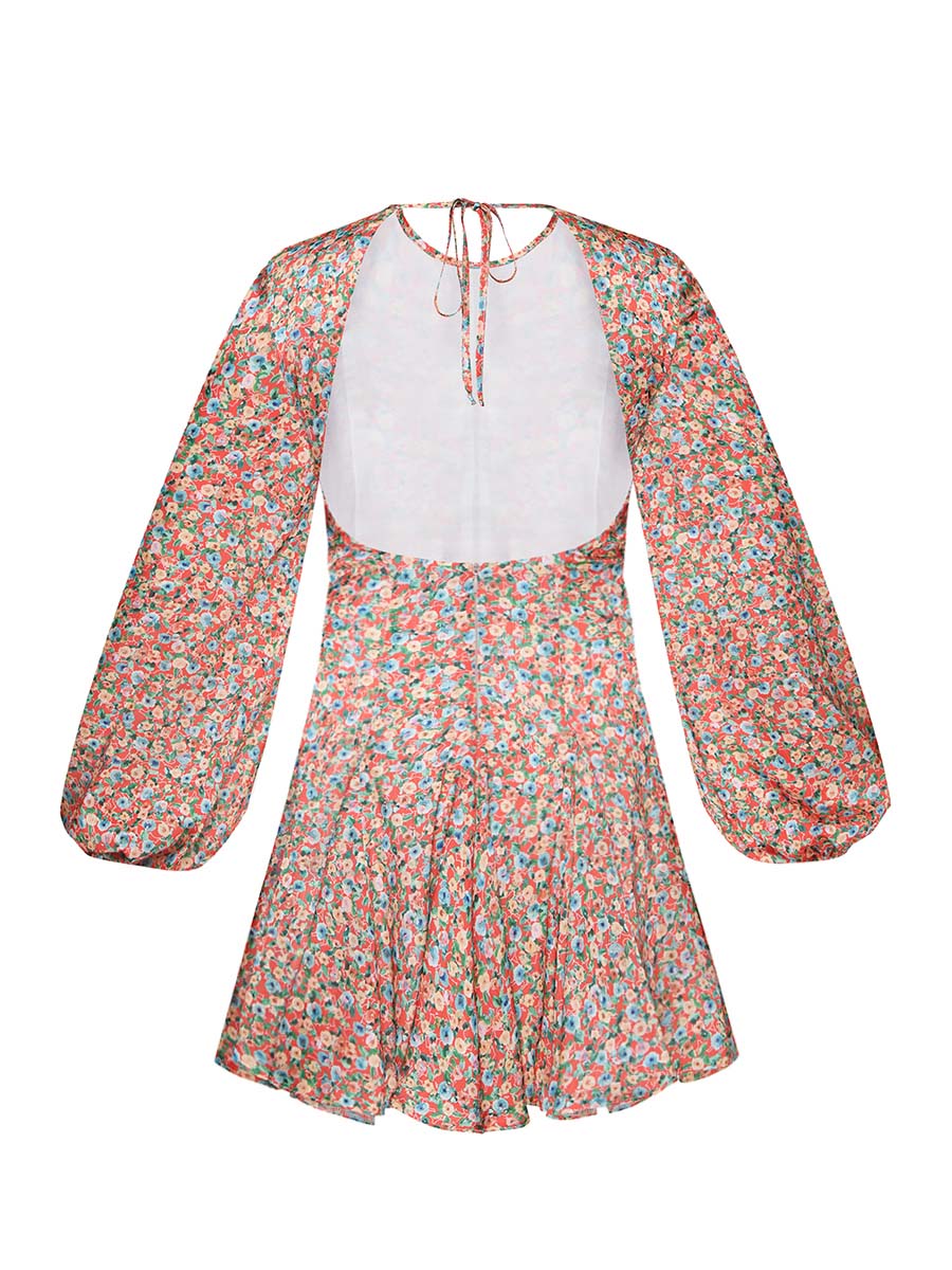 A delicate open back and an elegant tie at the neck lend the dress a touch of mystery and sophistication, making it an eye-catching piece. The dress fastens with a hidden zipper at the back for a seamless finish.