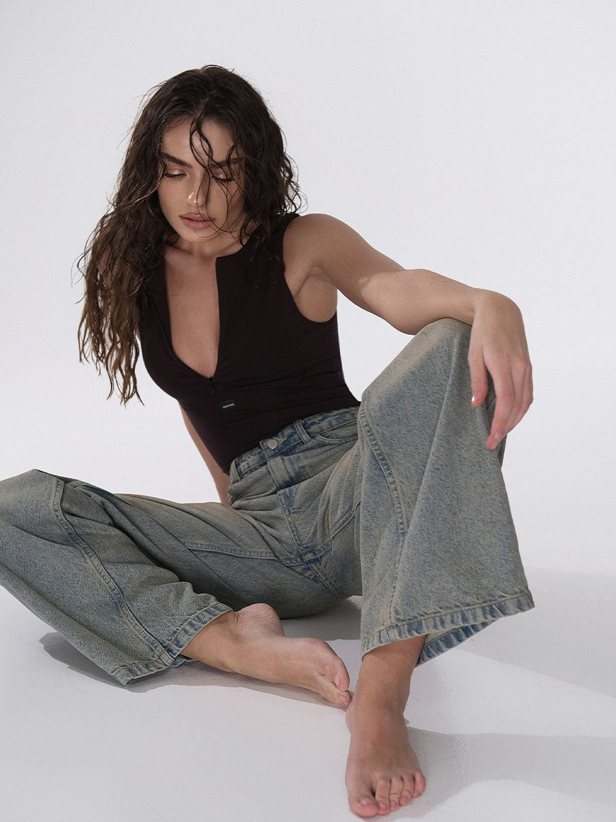 These jeans, crafted from high-quality denim, offer all-day comfort and exceptional durability, making them a practical wardrobe staple. The relaxed palazzo cut ensures versatility, allowing you to easily pair them with any top or footwear to create a variety of stylish looks. A small detail, such as the embroidered logo on the pocket, adds a unique touch to the design.