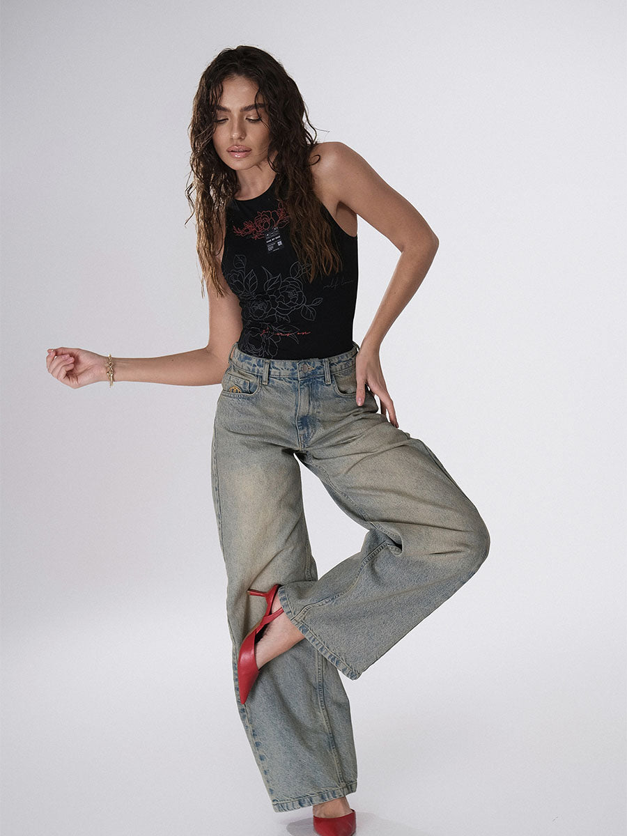 Palazzo Jeans, Logo Embroidery on the Pocket