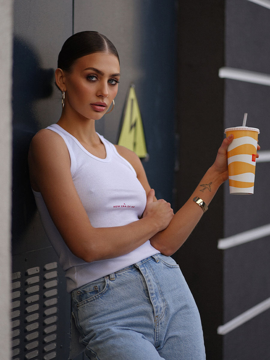 Made from high-quality cotton fabric with added elastane for durability, this tank top provides a pleasant and lightweight feel. The fitted silhouette and classic straps combine style with comfort. Decorated with a unique NEW ERA OF ME print.